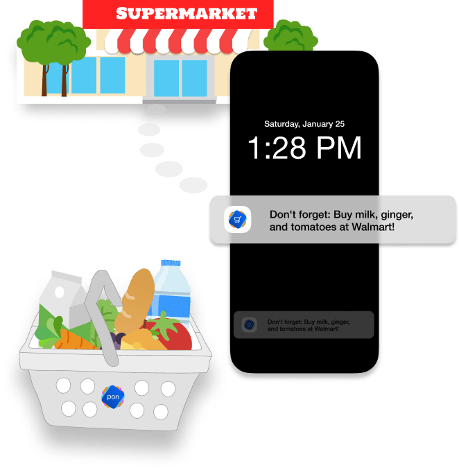 pon knows when you're near a supermarket and automatically reminds you of your pending shopping via push notification. Prefer to remember on your own? No problem – you can disable this feature anytime.
