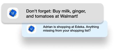 If you share your shopping list with others, pon will automatically notify them when you start shopping. No more 'Honey, do we need anything?' – everything happens seamlessly.